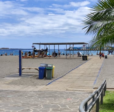 Arona y Los Cristianos son sinónimo de paseos que parecen no tener fin y de un mar que se deja alcanzar sin esfuerzo. En esta zona del sur de Tenerife, la accesibilidad no es algo “añadido” ni excepcional: forma parte natural del paisaje y del día a día. Sus playas, de origen volcánico y ambiente acogedor, destacan no solo por su belleza, sino por ofrecer accesos reales, continuos y funcionales para personas con movilidad reducida y usuarias de silla de ruedas.